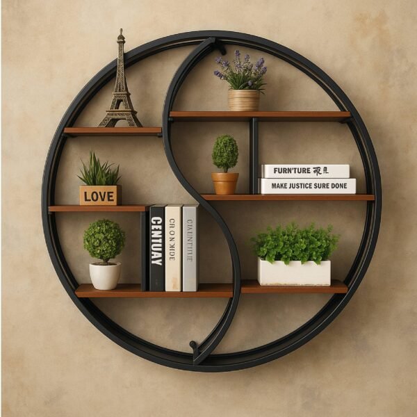 Wall-Mounted "YIN YANG" Metal Storage Floating Shelve Frame Decor