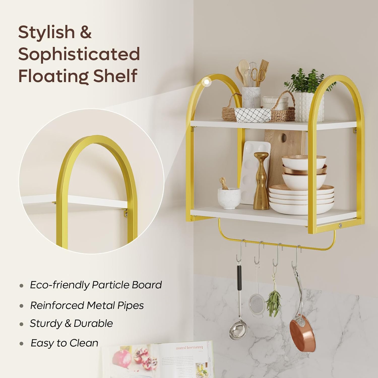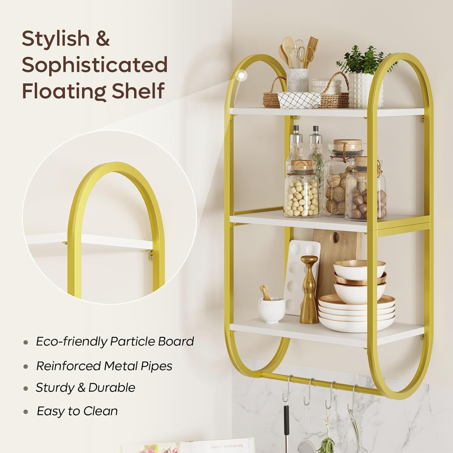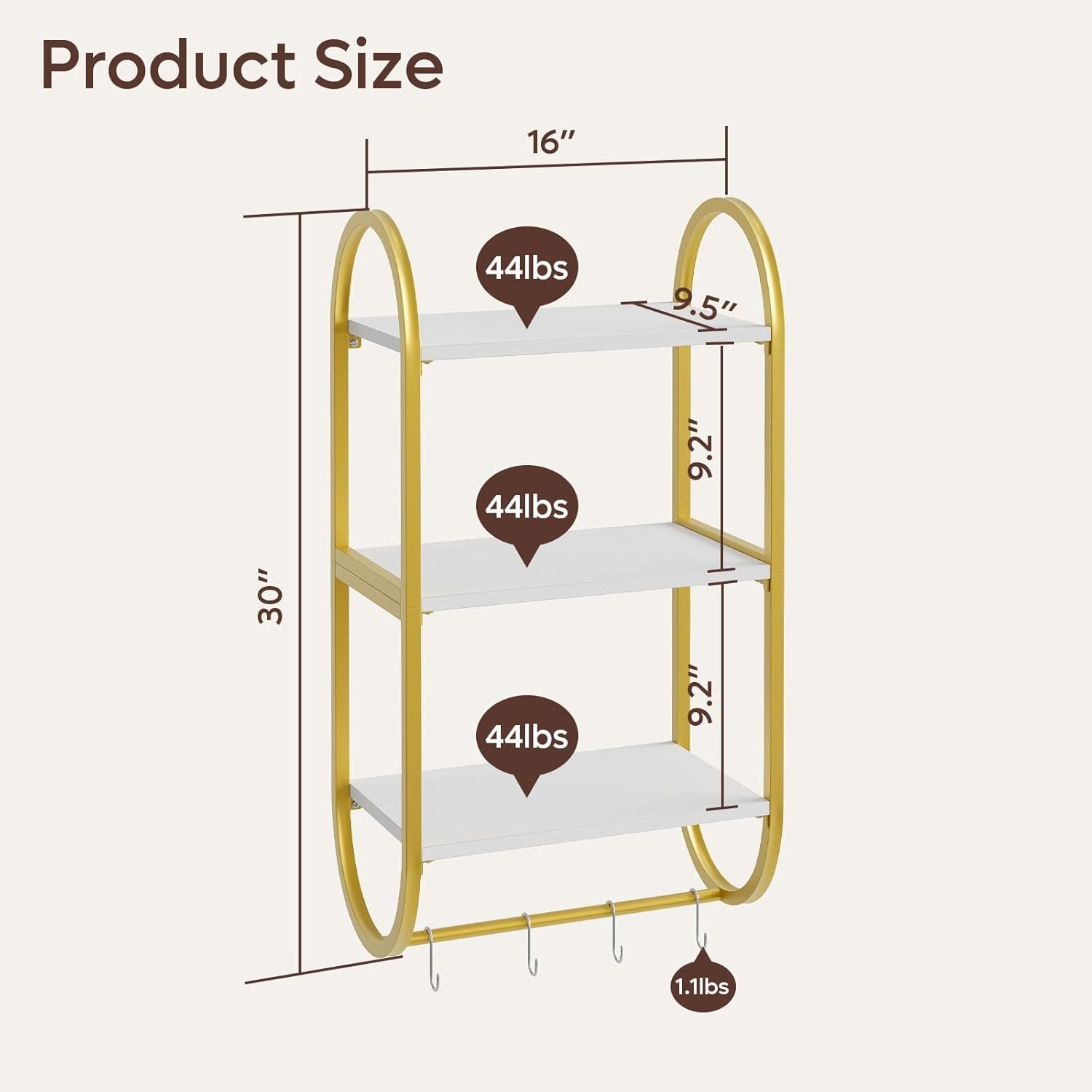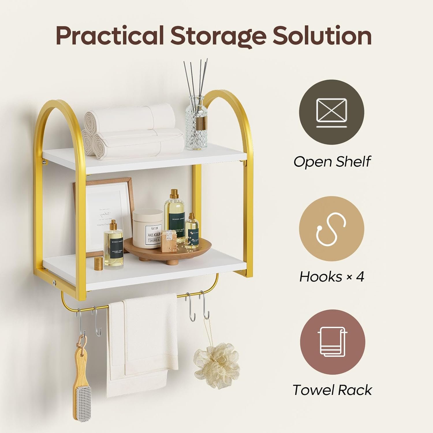 3 Tier Wall Shelves for Bathroom with Towel Bar and Hooks