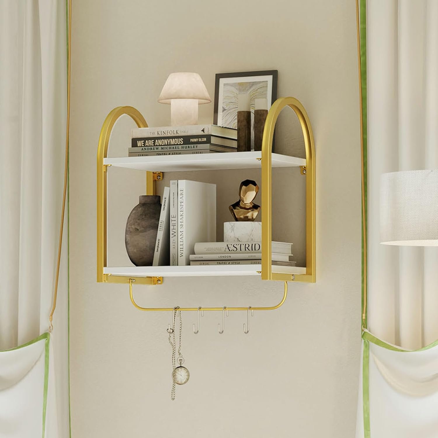 Wall Key Holder with Shelf, Hooks, and Mail Organizer