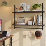 - 【Wall Shelf with Towel Bar & DIY Combination】Bestier kitchen floating shelf has 8 additional hooks which could be placed on the bottom or side, providing DIY free combination to hang mugs, towels, scarves, small tools like scissors, and beer opener. The length of the bottom towel bar is 23″ and can hold 2 or 3 towels to quickly dry and also available for hooks DIY combo