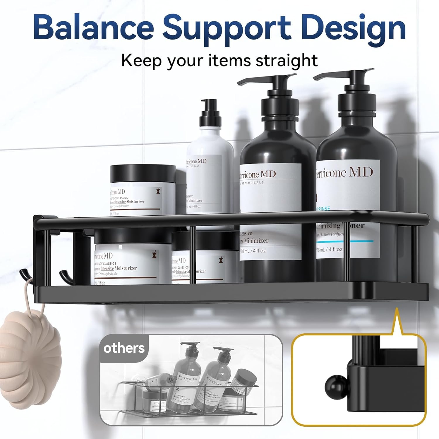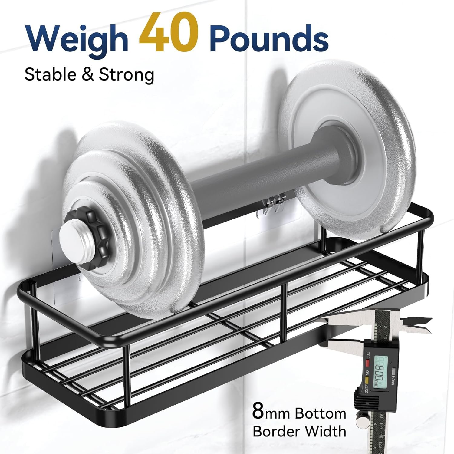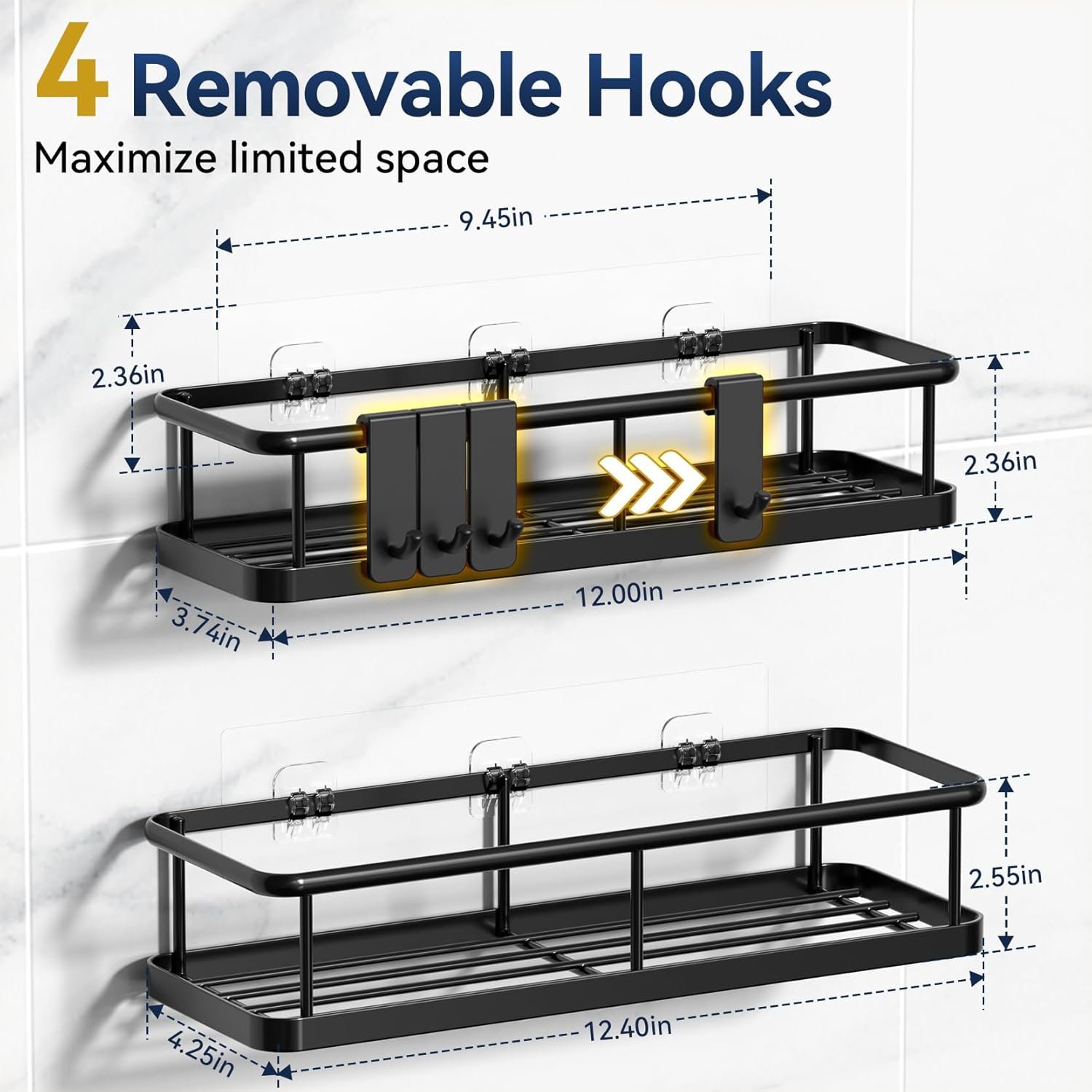 Shower Caddy Adhesive, No Drill Bathroom Shower Organizers, with Removable Hooks, Rust Proof Shower Shelves