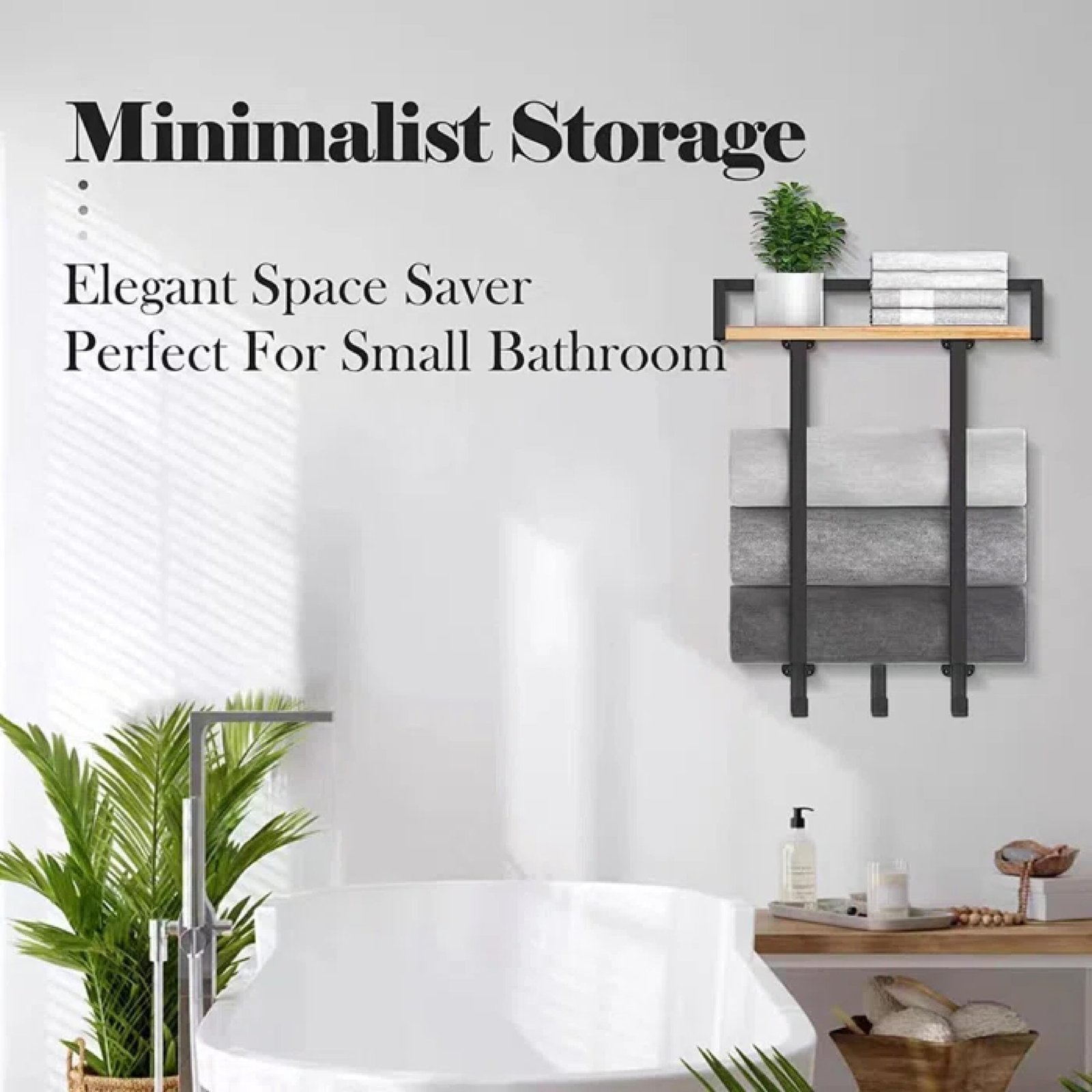 Towel Racks for Bathroom Wall Mounted with Wooden Shelf for Folding Large Towels